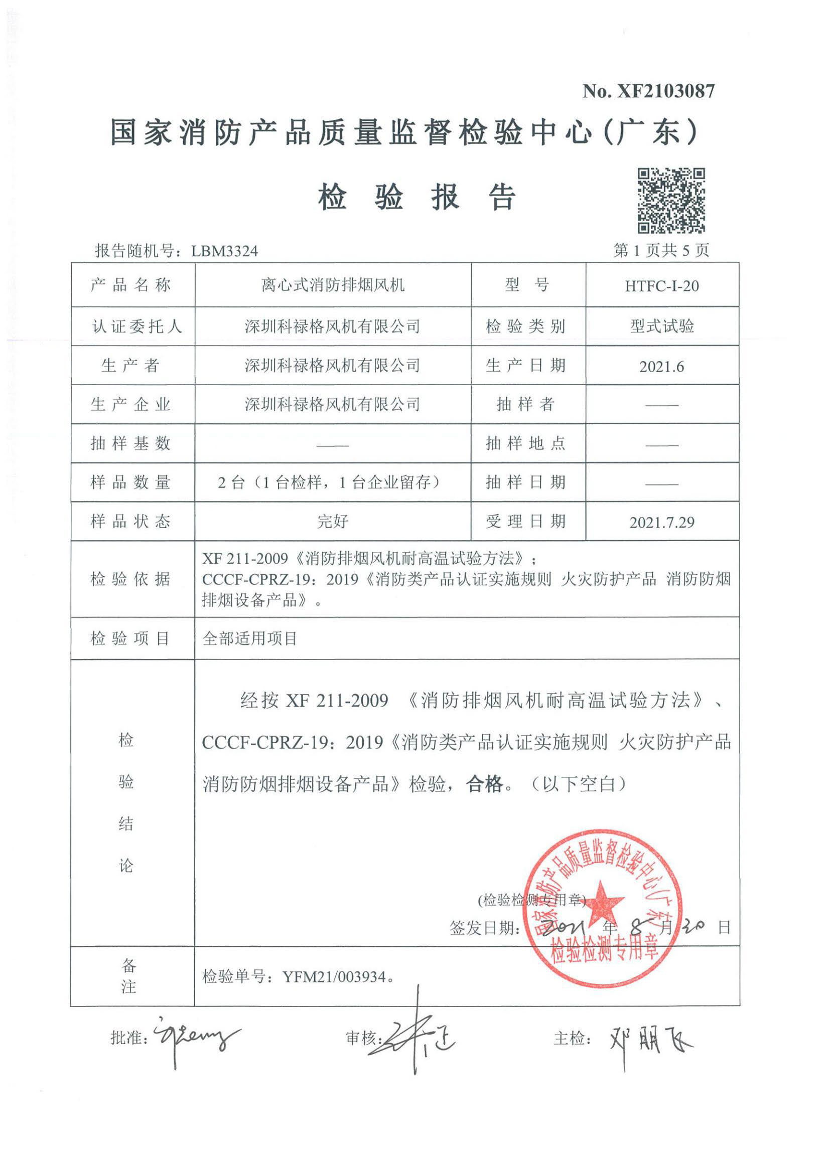 檢驗(yàn)報(bào)告 HTFC-I-20
