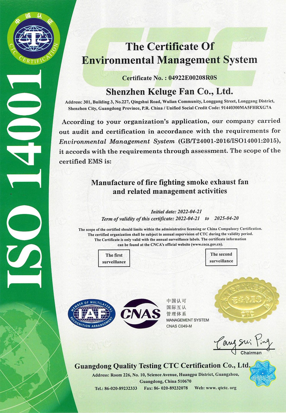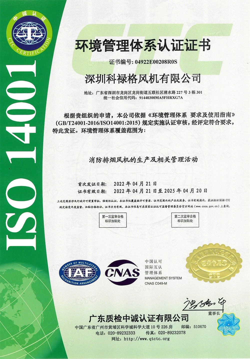 環(huán)境管理體系認(rèn)證證書